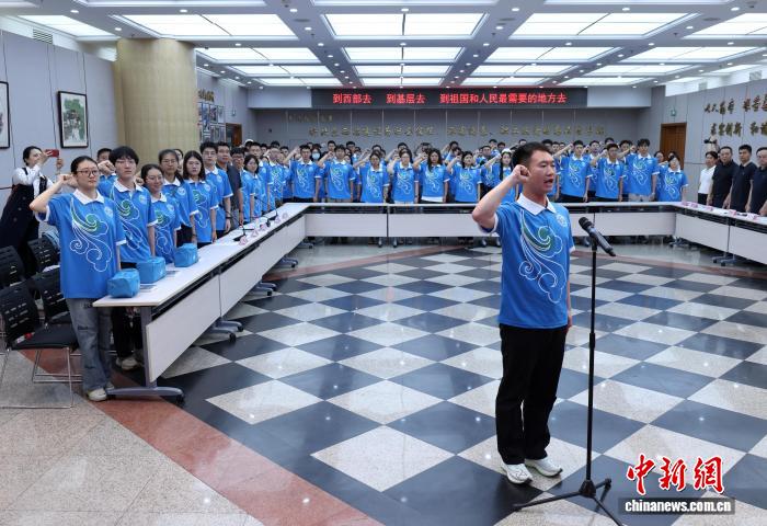 30余所在京高校招募選拔的120余名志愿者代表莊嚴宣誓,正式踏上新的征程。中新社記者 趙雋 攝