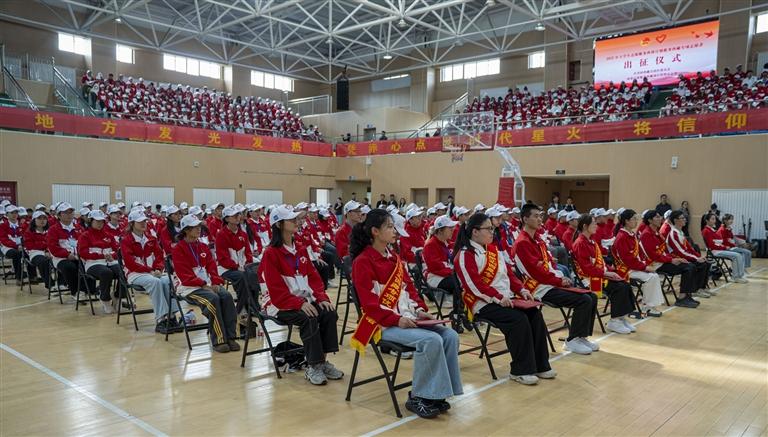 在激昂的音樂(lè)聲中,授旗環(huán)節(jié)莊嚴(yán)進(jìn)行。接過(guò)出征旗后,志愿者們高舉右拳,集體莊嚴(yán)宣誓:“我志愿成為一名光榮的志愿者……”堅(jiān)定的誓言在會(huì)場(chǎng)回蕩,他們發(fā)出了“青春為中國(guó)式現(xiàn)代化挺膺擔(dān)當(dāng)”的錚錚誓言,展現(xiàn)出奉獻(xiàn)西部的決心與信念。