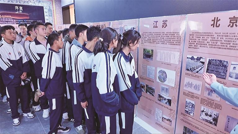 學(xué)生觀看禁毒先驅(qū)林則徐生平史績?nèi)珖?lián)展展板。文/圖 記者 張雪芳