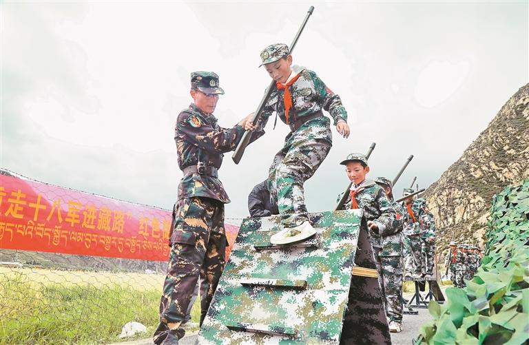 圖為學生在重走一段十八軍進藏路。記者 格桑倫珠 攝