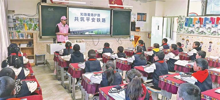 日前,青藏鐵路拉薩車(chē)務(wù)段那曲站團(tuán)支部在那曲色尼區(qū)香茂鄉(xiāng)中心小學(xué)開(kāi)展以“愛(ài)路護(hù)路進(jìn)校園”為主題的安全宣傳活動(dòng)。