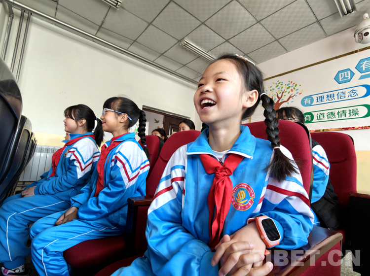 圖為4月23日,西藏自治區(qū)新華書店在拉薩市城關(guān)區(qū)海淀小學(xué)開展的“享受閱讀 讓夢飛翔”閱讀校園行活動互動環(huán)節(jié),有趣的互動把小學(xué)生給逗樂了 攝影:次旦拉姆