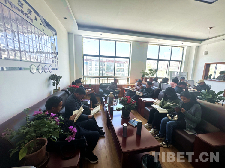 圖為4月23日,拉薩市尼木縣小學(xué)的教師們在閱讀書籍 攝影:倉覺