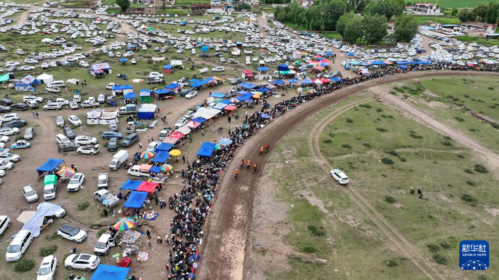 7月23日拍攝的拉薩甘丹曲果鎮(zhèn)賽馬場(chǎng)上的走馬比賽(無人機(jī)照片)。 新華社記者 晉美多吉 攝