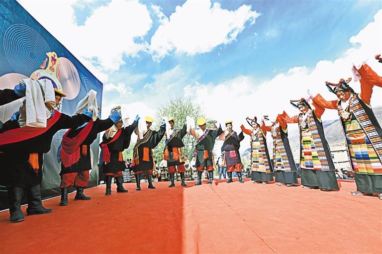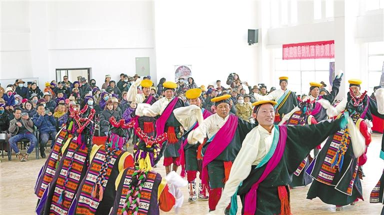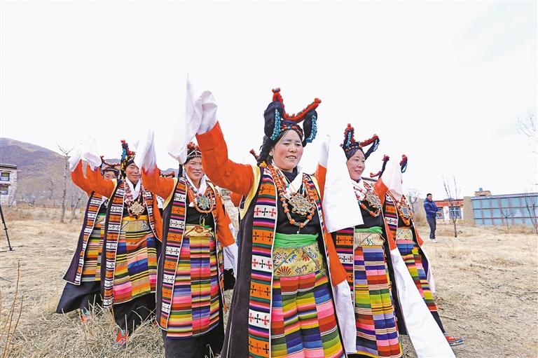 “如今,這支隊伍已發(fā)展到20多名成員,都是當(dāng)?shù)厝罕姟K囆g(shù)隊經(jīng)常受邀參加各種大小晚會、重要節(jié)日演出和赴區(qū)內(nèi)外非遺展演等,其影響力和傳播力不斷提升,特別是甲瑪諧欽《和親路》受到廣泛歡迎?!奔赚斷l(xiāng)工作人員德吉卓嘎說。