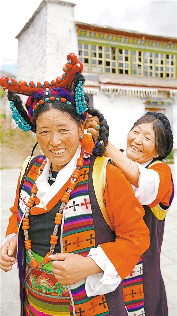 甲瑪鄉(xiāng)諧欽隊演職人員做演出前準(zhǔn)備。