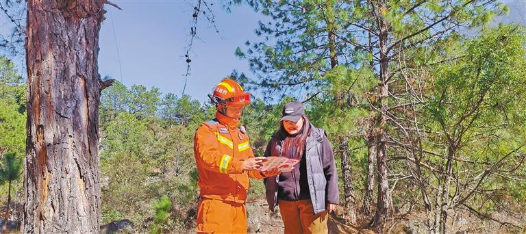 林芝市察隅縣消防救援大隊宣傳員走進旅游景區(qū),為游客科普林區(qū)防火常識。 通訊員 肖暄 攝