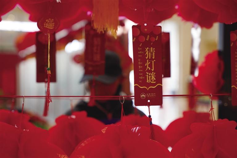 同一時間,在風景秀麗的羅布林卡公園內(nèi),西藏自治區(qū)圖書館舉辦的猜燈謎活動也在火熱進行。五彩斑斕的燈籠與公園的美景相互映襯,構(gòu)成了一幅絢麗的畫卷。此次活動準備了2000條謎面,其中漢文1500條、藏文500條,吸引了眾多市民和游客踴躍參與。參與者們手持紙筆,認真記錄下感興趣的燈謎,隨后絞盡腦汁思考答案。每當有人成功猜出謎底,現(xiàn)場便會響起熱烈的掌聲和歡呼聲,將活動氣氛一次次推向高潮。市民周先生表示:“每年我都來參加自治區(qū)圖書館的猜燈謎活動,謎面有意思,還有文具、文創(chuàng)小禮品,體驗很棒!”