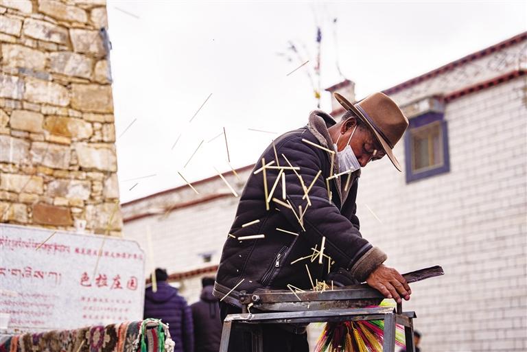 有人說,西藏的春天、夏天和秋天屬于格桑花,而冬天則屬于“羅薩梅朵”。對于桑木村的村民來說,“羅薩梅朵”不僅帶來收入,更是一種對傳統(tǒng)文化的堅守和熱愛。每年,村民們將一整間房的金黃麥穗和青稞穗備好,隨后拿出來一一上色。房內(nèi)的麥穗越來越少,村民的腰包越來越鼓,大街小巷里越來越多的人手里拿著色彩繽紛的“羅薩梅朵”,臉上洋溢著幸福的笑容。
