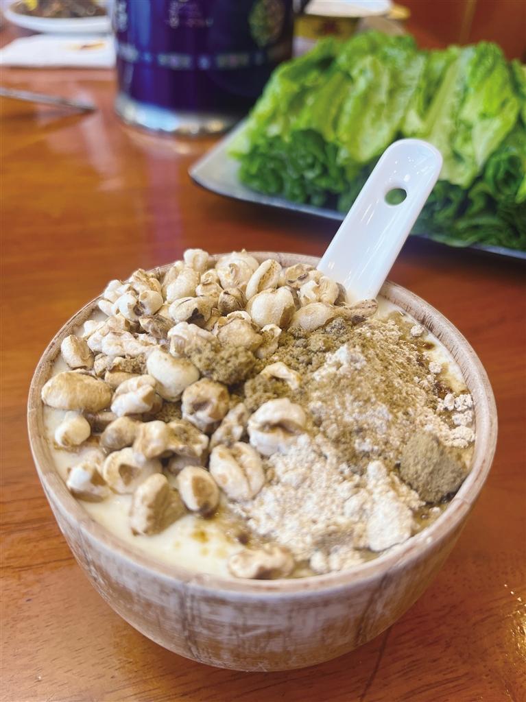 當(dāng)然,來到西藏一定得嘗嘗這里的牦牛酸奶。由純牦牛奶發(fā)酵而成,口感濃稠細(xì)膩,奶香濃郁,營養(yǎng)豐富。通常,原味的牦牛酸奶味道偏酸,需搭配白糖一起食用,也可以根據(jù)個(gè)人口味加入蜂蜜、炒青稞、人參果等,口感更加豐富、易接受。