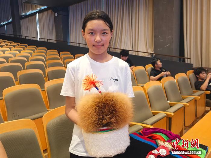 “老師,我要不要戴著這頂天線帽?”要接受采訪時,瓊措吉特意拿出來自家鄉(xiāng)西藏那曲市多安縣的國家級非物質(zhì)文化遺產(chǎn)“天線帽”——因帽子上豎有一根類似天線的條形狀彩線編織物而得名。