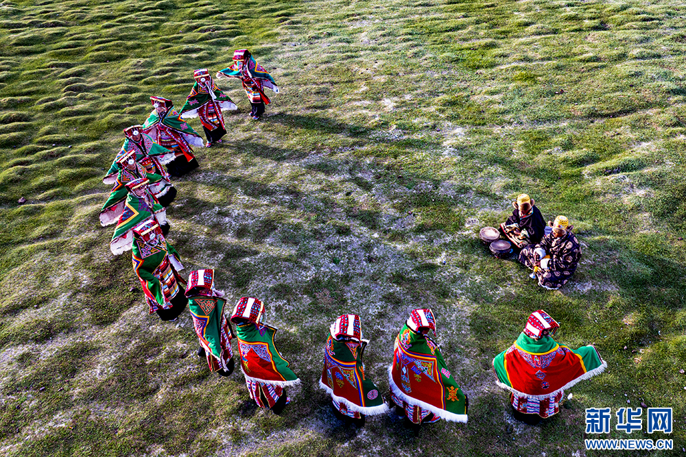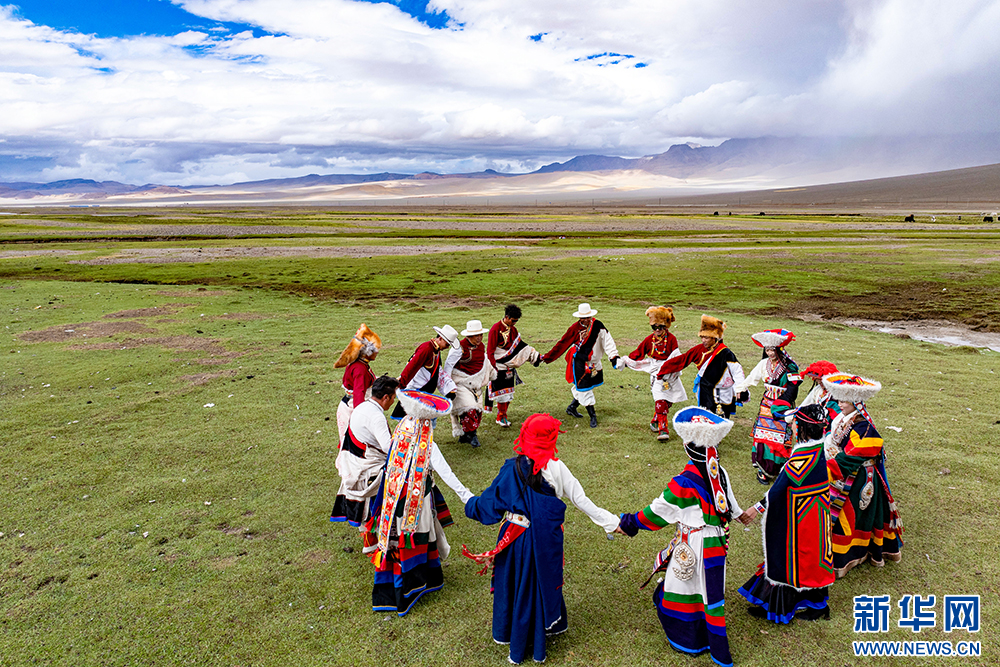 普蘭縣西德村村民在表演“果爾孜舞”(6月10日攝)?!肮麪栕挝琛庇?300多年的歷史,傳承沿襲傳統(tǒng)的口口相傳。2011年,被列入國(guó)家級(jí)非物質(zhì)文化遺產(chǎn)名錄。新華網(wǎng) 旦增努布 攝