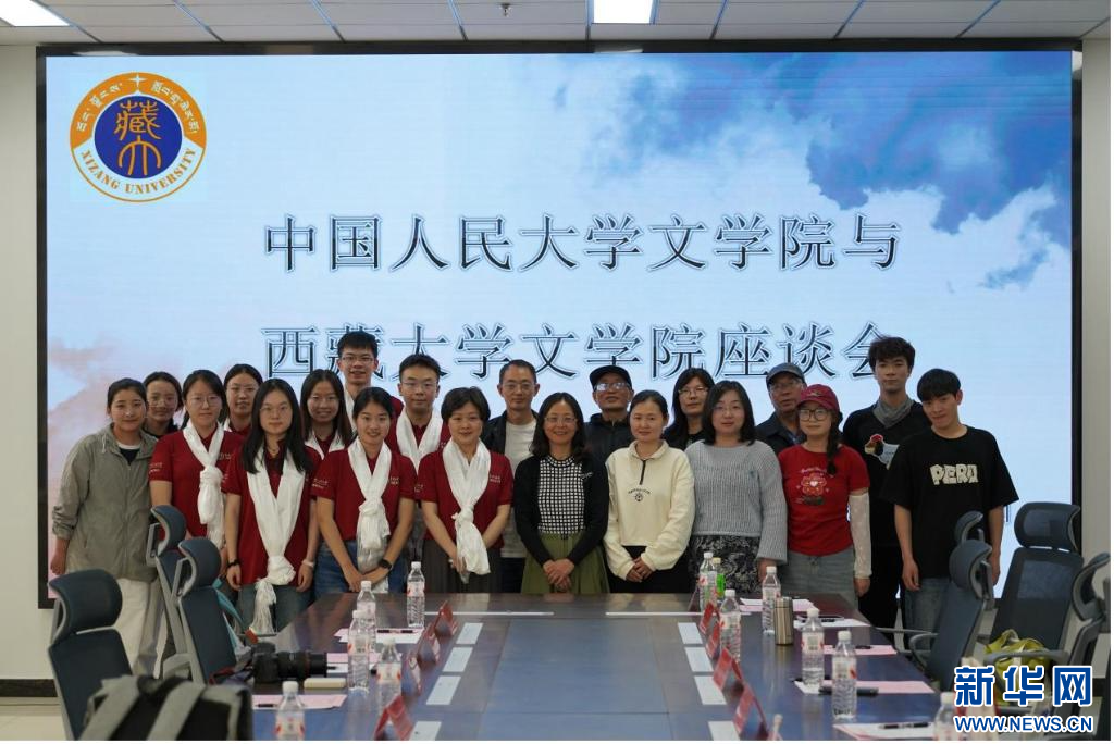 中國人民大學(xué)和西藏大學(xué)兩校文學(xué)院師生交流合影。周宸旭 攝