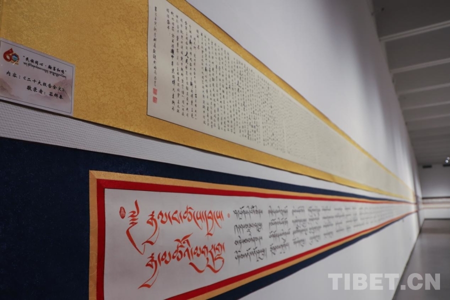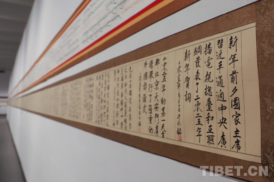 中國西藏網(wǎng)訊 近日,由中共林芝市委員會宣傳部、西藏書法家協(xié)會主辦的“民族同心·翰墨和鳴”漢藏書法長卷作品藝術(shù)展正在西藏美術(shù)館展出。展覽面向市民開放,將展出至1月底。