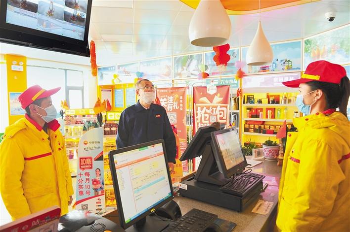 圖為葛立均(中)在考察中石油阿里銷售分公司加油站過(guò)程中走訪慰問(wèn)干部職工。 記者 溫凱 洛桑旦增 攝