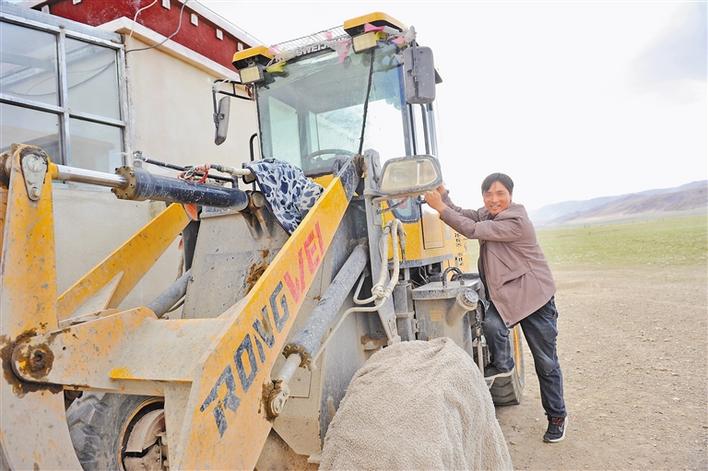 申扎縣買巴鄉(xiāng)扎瓊?cè)逯赂荒苋藲W珠和他的致富“伙伴”——裝載機。