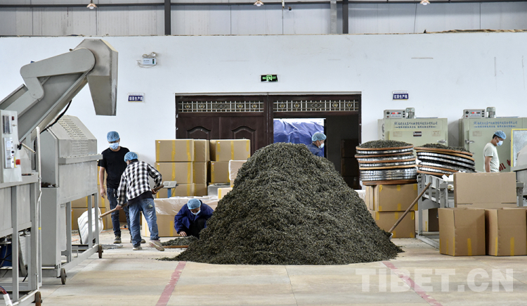 圖為林芝市墨脫縣茶葉加工廠的工人正在加工茶葉
