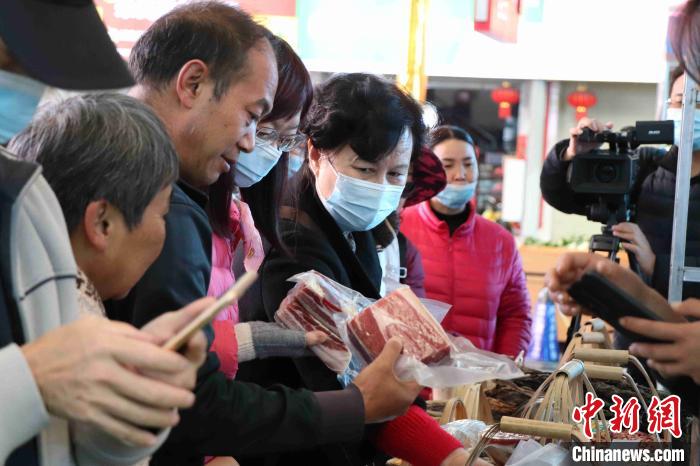 圖為昆明市民了解選購東川“脫貧山貨”?!】姵?攝