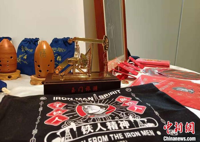 圖為“鐵人”王進喜故里甘肅玉門以“鐵人精神”制作的文創(chuàng)產(chǎn)品展示。 張婧 攝