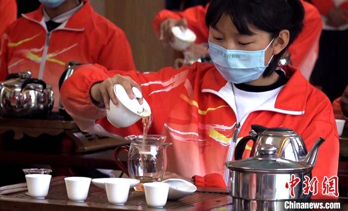 圖為11月19日,西藏林芝市職業(yè)技術學校學生學習茶藝。中新社記者 貢桑拉姆 攝