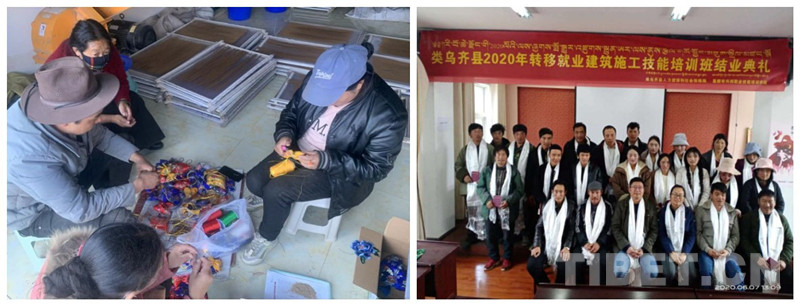 左圖為類烏齊縣農(nóng)牧民通過(guò)加工手工藝品增收;右圖為類烏齊縣2020年轉(zhuǎn)移就業(yè)建筑施工技能培訓(xùn)班結(jié)業(yè)典禮