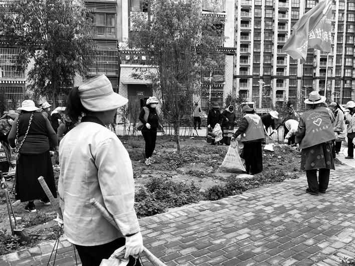 東嘎鎮(zhèn)祥和苑社區(qū)每周末以聯(lián)戶為單位,整治衛(wèi)生環(huán)境,摒棄“臟、亂、差”,營造良好的社區(qū)環(huán)境?!懊總€(gè)周末,我都會(huì)參加志愿服務(wù)活動(dòng),主要是清理社區(qū)公共區(qū)域,有時(shí)也會(huì)去清理河道,希望可以為社區(qū)建設(shè)出份力。”今年72歲的老人卓瑪告訴記者。