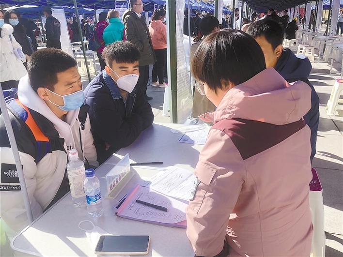 圖為求職者在咨詢招聘信息。記者 王靜 攝