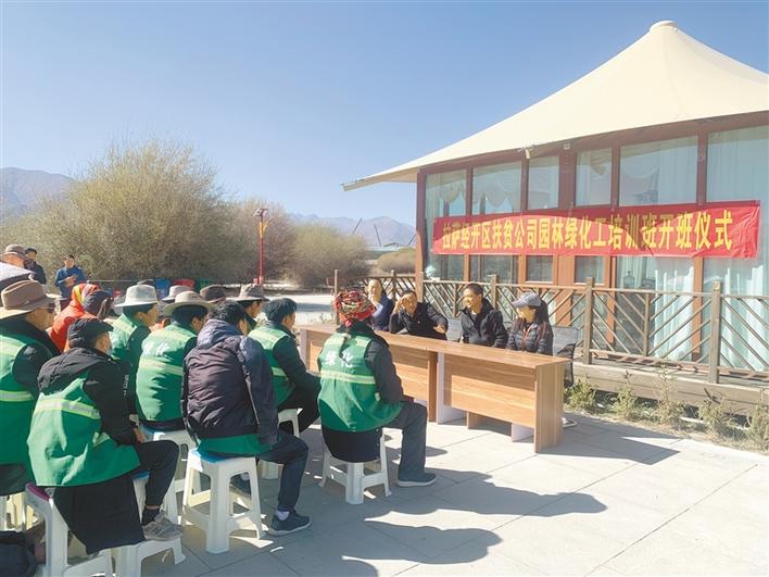 圖為拉薩經(jīng)開區(qū)產(chǎn)業(yè)扶貧投資發(fā)展有限公司園林綠化工培訓(xùn)班開班儀式現(xiàn)場(chǎng)。記者 劉斯宇 攝