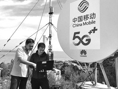 在江蘇灌云縣開山島,中國移動工作人員測試5G信號。新華社發(fā)