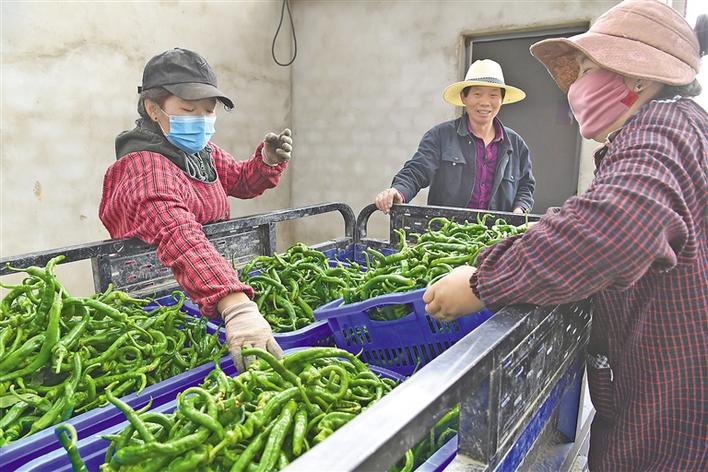 圖為在基地就業(yè)的瓊結(jié)縣下水鄉(xiāng)村民將采摘的青椒運(yùn)往市場(chǎng)。記者 洛桑 次旺 攝