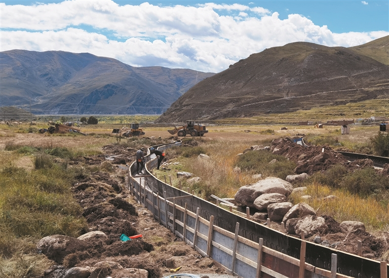圖為當?shù)剞r(nóng)牧民正在參與修建灌溉水渠。拉薩融媒記者 凃 瓊攝