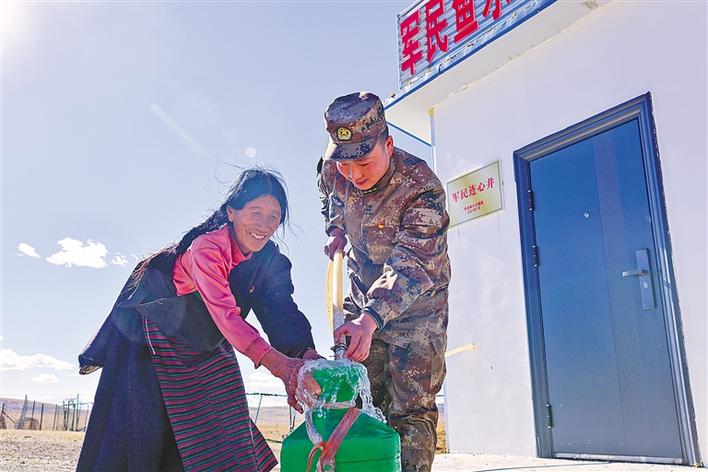 “這水真甜!感謝金珠瑪米!”喝上水井抽上來的第一口水,前來打水的牧民央姆豎起了大拇指,“軍分區(qū)官兵不僅給咱們打了水井,前段時(shí)間還下村開展義診,為牧民看病發(fā)送藥品,之前因?yàn)楹攘肆淤|(zhì)水源患上的腸胃病,也得到了治療!”