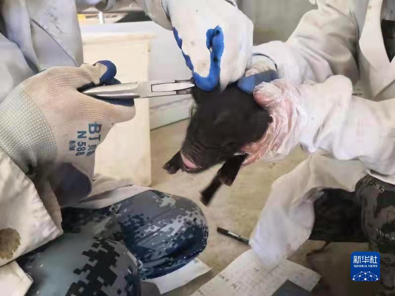 圖為工作人員給仔豬打耳缺編號(hào)。(受訪者供圖)