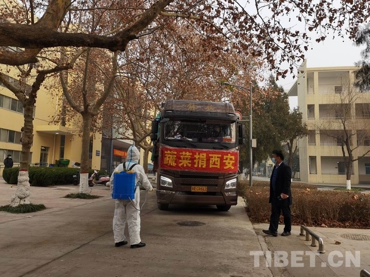 這是由河南南陽(yáng)社區(qū)志愿者協(xié)會(huì)組織的馳援陜西的大卡車,兩位志愿者協(xié)會(huì)成員于2022年1月4日晚11時(shí)30分出發(fā),驅(qū)車千里一夜未眠,只為第一時(shí)間把新鮮蔬菜送到學(xué)校,助力抗疫。1月5日上午11時(shí),在西藏民族大學(xué)第一餐廳廣場(chǎng)前,舉行了捐贈(zèng)儀式。