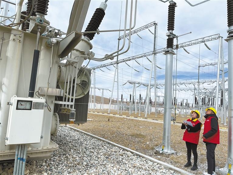 圖為國網(wǎng)那曲供電公司變電運檢中心員工在對110千伏那曲變電站設(shè)備進行檢查。記者 萬靖 攝
