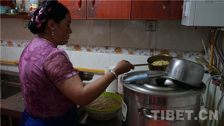 圖為其美在后廚為客人制作藏面 攝影:張曉琪