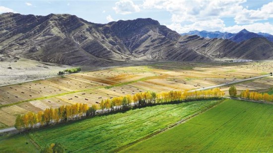 圖為9月23日,日喀則市桑珠孜區(qū)曲美鄉(xiāng)收割完的青稞地。