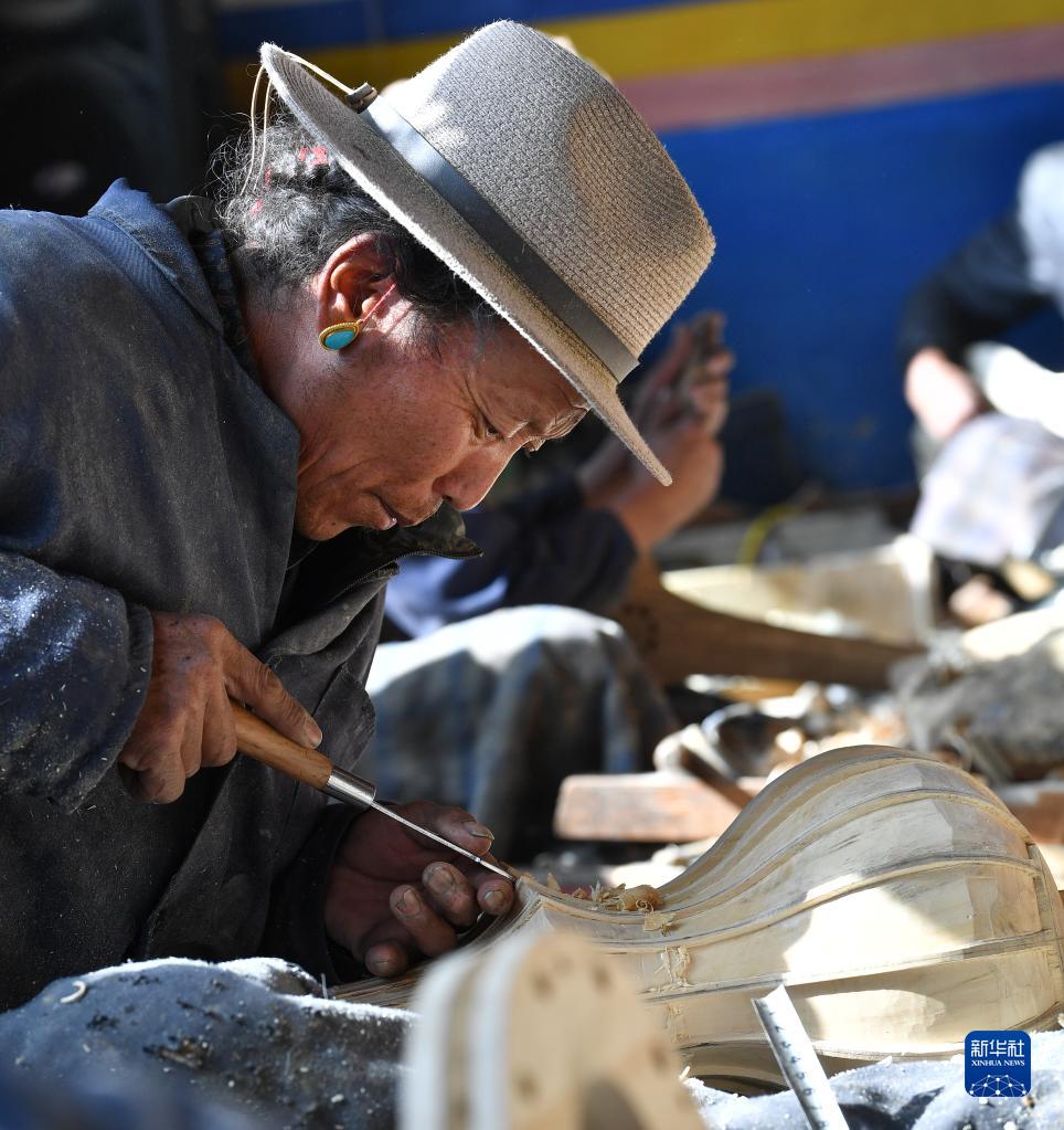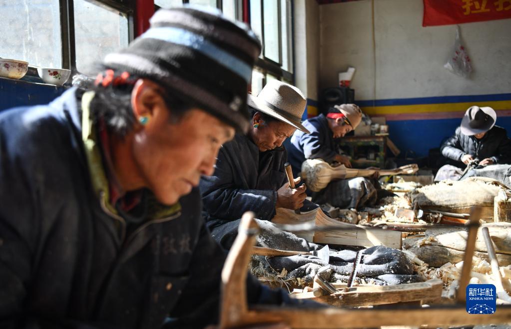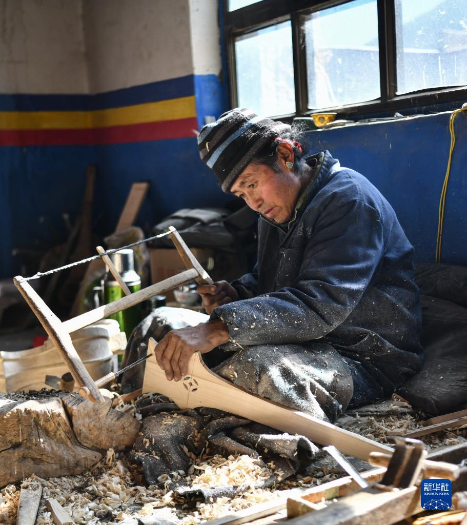 西藏日喀則拉孜縣有著悠久的扎念琴制作歷史。2014年,“扎念琴制作技藝”入選第四批國家級非物質(zhì)文化遺產(chǎn)代表性項(xiàng)目名錄。今年47歲的索朗瓊拉是該項(xiàng)目的傳承人。他從14歲開始跟隨父親學(xué)藝,六年后出師。2010年,他和朋友們一起成立了制作扎念琴的民族手工業(yè)農(nóng)民專業(yè)合作社。