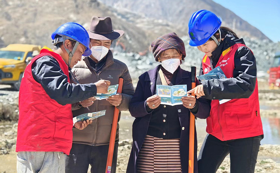 國網(wǎng)曲水縣供電公司共產(chǎn)黨員服務隊在拉薩市曲水縣茶巴拉鄉(xiāng)色麥村開展春耕春灌安全用電宣傳(4月7日攝)。國網(wǎng)西藏電力供圖 旦增央卓 攝