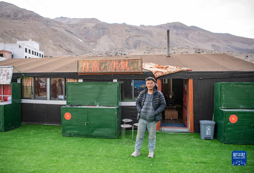 今年27歲的旦增是扎西宗鄉(xiāng)嘎熱村村民。他已在大本營經(jīng)營帳篷旅館近十年,“以前,游客來了只能睡大通鋪,用太陽能板發(fā)電,用水還要從絨布河打水背過來?!钡┰稣f。