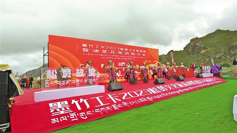 近日,拉薩市墨竹工卡2023松贊文化旅游周暨油菜花旅游推介會開幕式在唐加鄉(xiāng)莫沖村舉行。