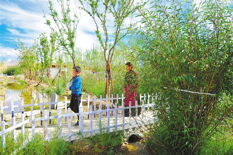 圖為阿里地區(qū)噶爾縣加木村群眾走在綠樹(shù)成蔭的小道上。 記者 溫凱 攝