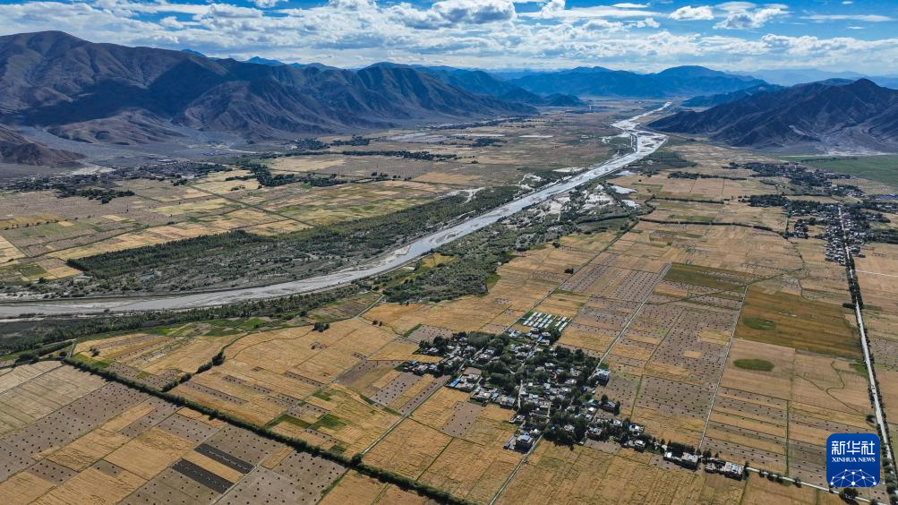 西藏日喀則市年楚河流域糧食長勢喜人(9月6日攝 無人機照片)。新華社記者 晉美多吉 攝