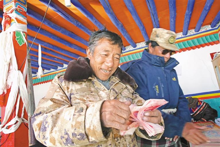 圖為多瑪鄉(xiāng)合作社社員喜領(lǐng)分紅。 通訊員 嘎瑪次仁 攝
