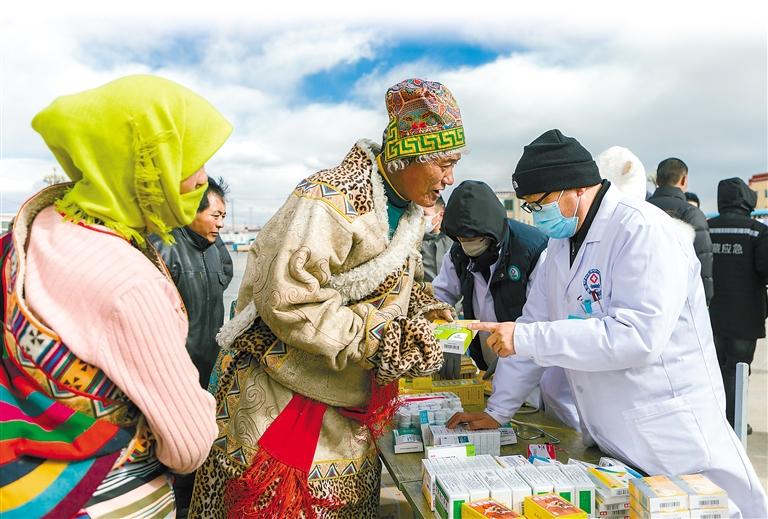 圖為“七送”活動現(xiàn)場,措勤縣人民醫(yī)院醫(yī)生為群眾送醫(yī)送藥。 措勤縣委宣傳部供圖