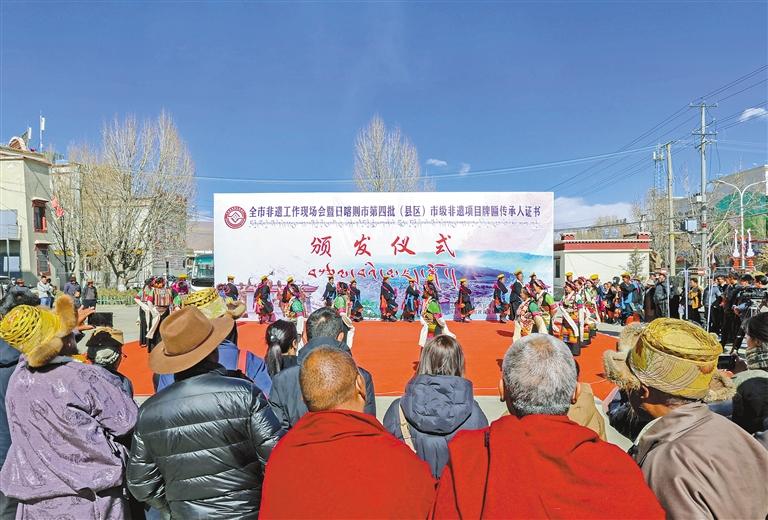 近日,日喀則市非遺工作現(xiàn)場(chǎng)會(huì)暨日喀則市第四批(縣區(qū))市級(jí)非遺項(xiàng)目牌匾傳承人證書頒發(fā)儀式在拉孜縣召開,現(xiàn)場(chǎng)頒發(fā)了第四批非物質(zhì)文化遺產(chǎn)代表性項(xiàng)目牌匾、第四批非物質(zhì)文化遺產(chǎn)代表性傳承人證書、日喀則市級(jí)非遺旅游景區(qū)牌匾。