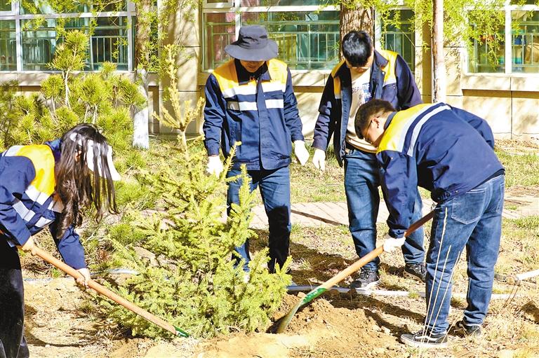 植樹現(xiàn)場,大家熱情高漲、干勁十足,或兩人一組,或三五人搭檔,分工合作,揮鍬挖坑、扶苗填土、夯土澆水。經(jīng)過一番勞作,新培植的苗木扎根在沃土里,迎風(fēng)挺立,成為春日一道亮麗的風(fēng)景線。