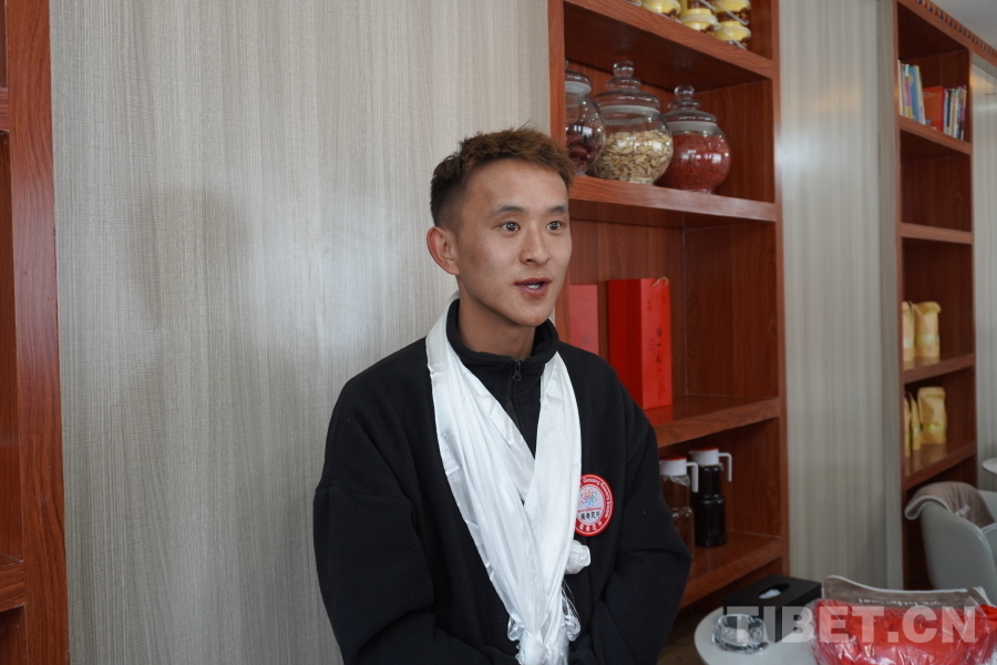 圖為正在接受采訪的格?;ㄩ_體驗館運營負(fù)責(zé)人丹增洛色 攝影:張曉琪