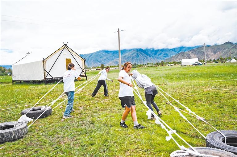 大家積極參與押加拉輪活動。記者 格桑倫珠 攝