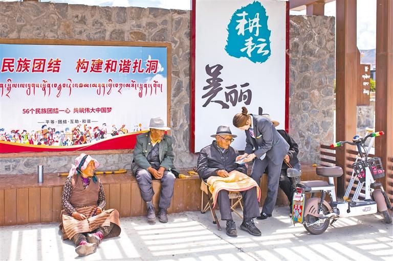 農(nóng)行客戶經(jīng)理在扎洞村向老年客戶宣講金融知識。記者 丹增平措 攝
